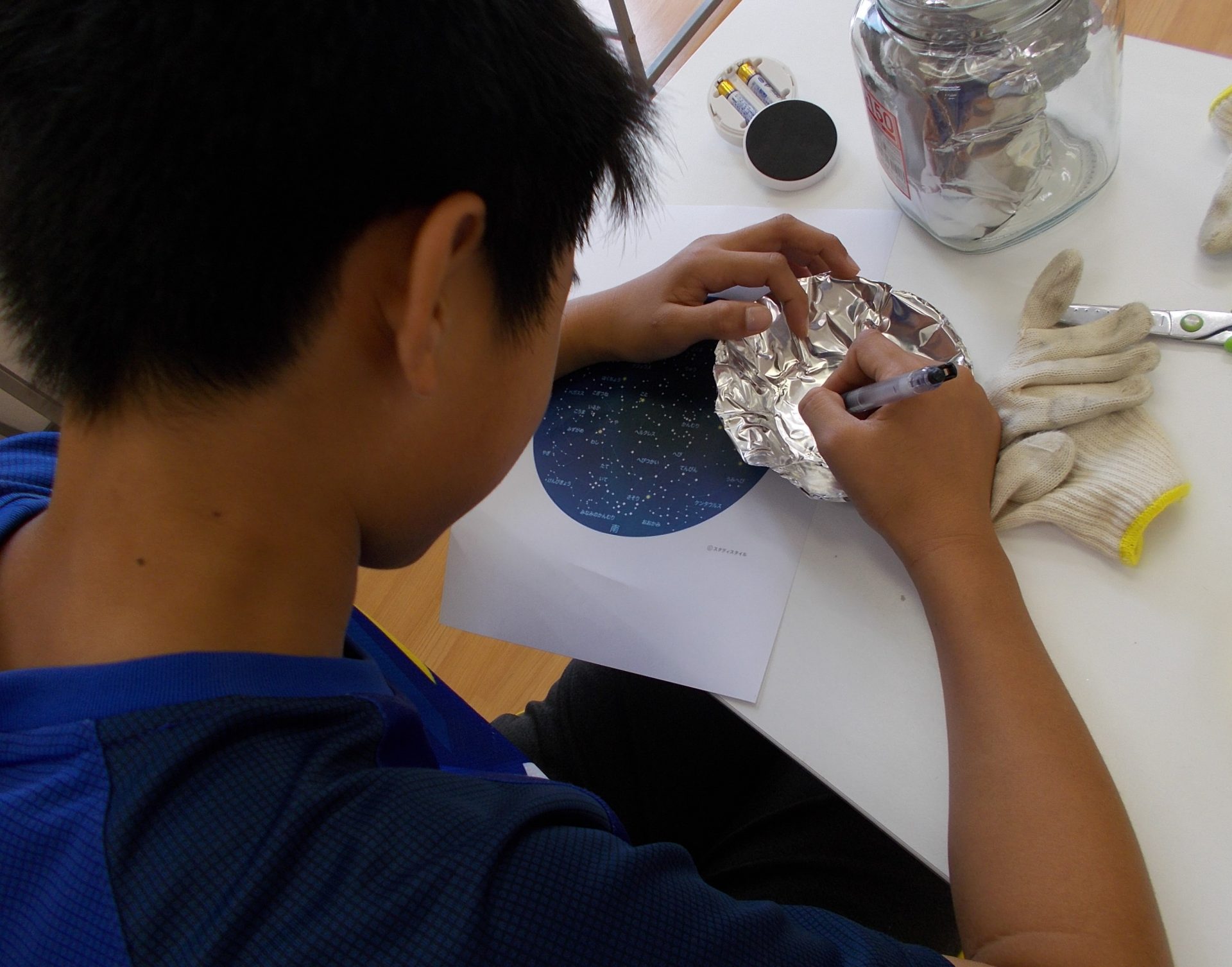 星座表を見ながら、自分だけのオリジナルのプラネタリウムを作っていきます。