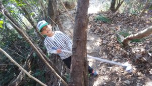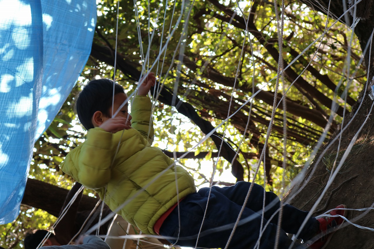 あっという間に食べ終わると、すぐに製作に取り掛かる子、チームのみんなが食べ終わるまで、森を抜けた広場で思いっきり鬼ごっこをしてカラダを温める子、お手製のベッドやハンモックでくつろぐ子、、、【ひみつ基地】づくりに正しいやり方、作り方、取り組み方なんてありません。自分たちの「やりたい!」「やってみたい!」「おもしろそう!」をとことん突き詰める時間です。ですから、お弁当後の自由時間も同じように、自分たちの「やりたい!」がどこにあるか自分たちの目で見つけ出します。