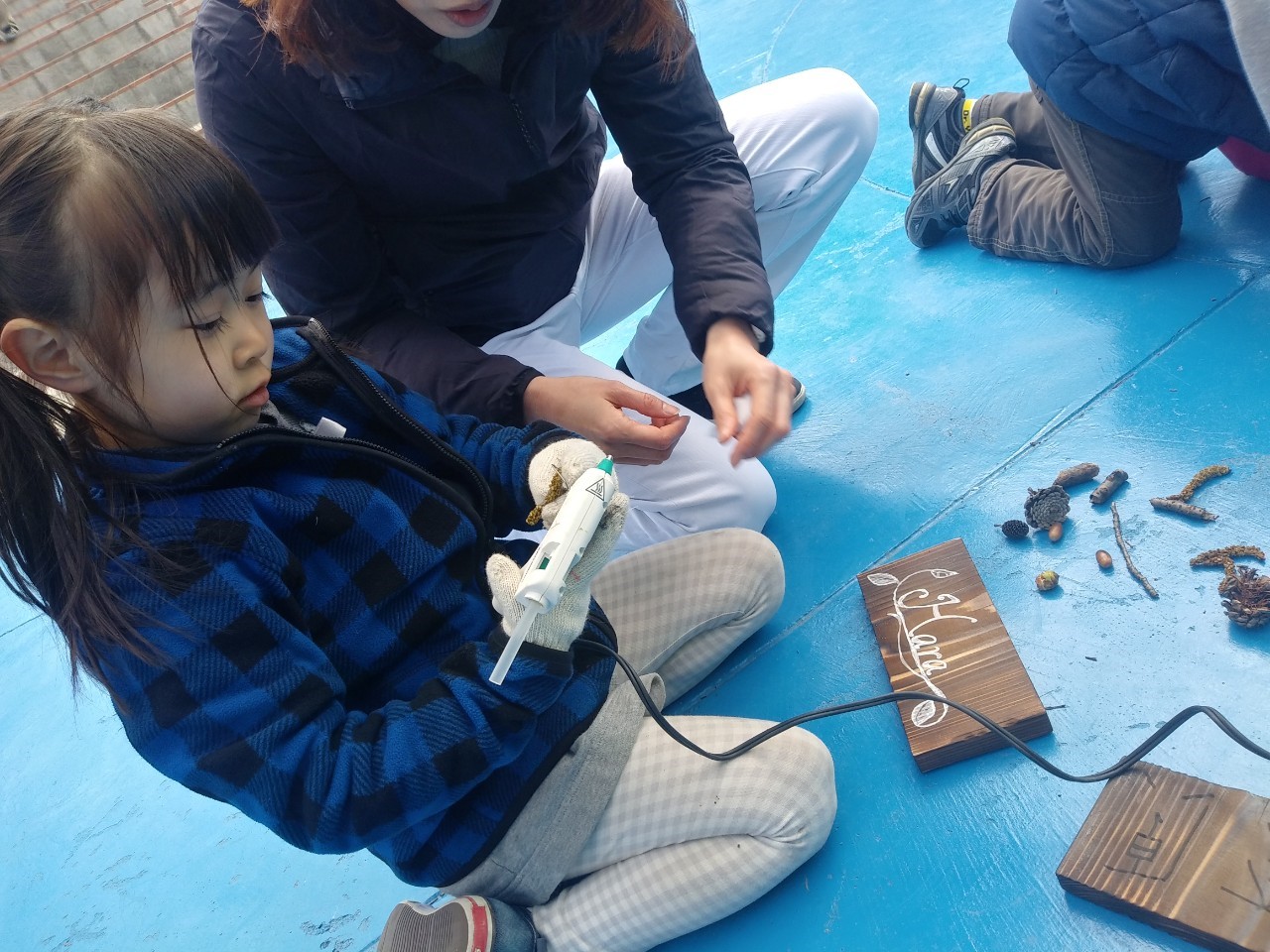 翌日は、美味しいホットドックを作って、焼き板工作をしました~