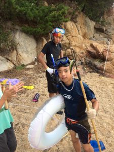 こんな風に、シュノーケルをつけ、ヤスを片手に海に潜ります。