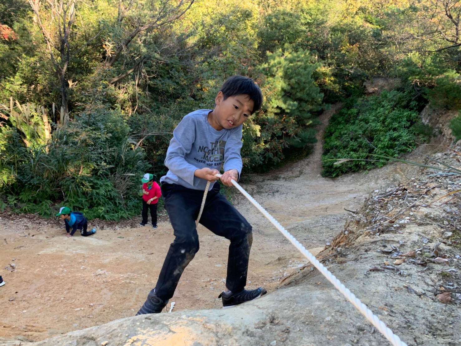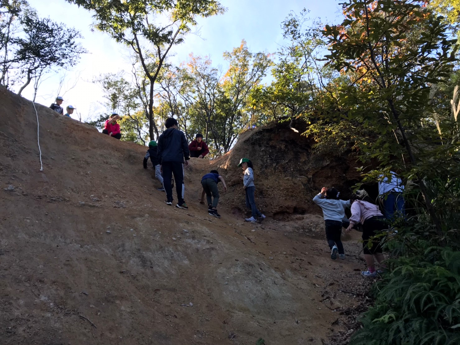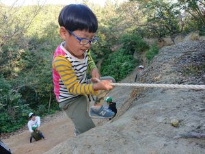 と、がけのぼりではなく、ロープを使ってがけを降り始める子も!