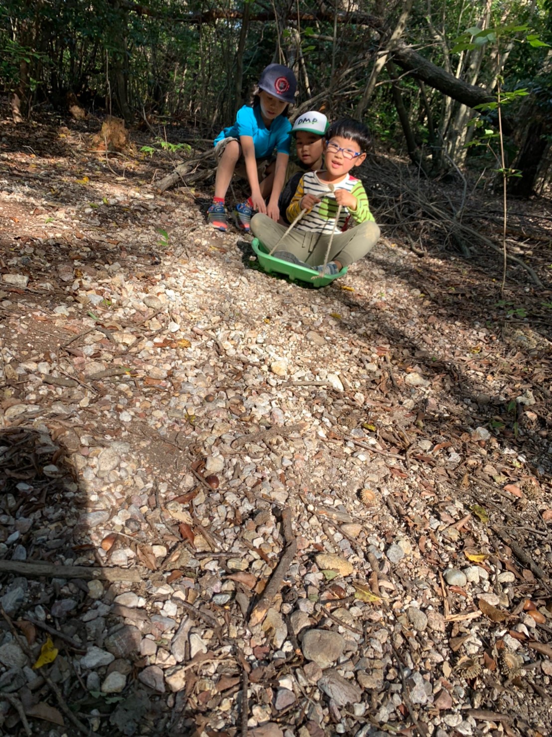 ・入り口近くにある、森の中の少し開けた場所です。伐採された枝が大量に積んであるのでかくれんぼにはもってこい??