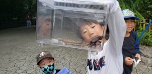 トカゲやバッタ、カナブンを捕まえている子がいました。