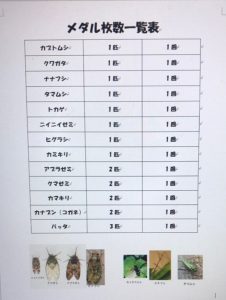 もちろん狙いはカブトムシですが、指定された虫を捕まえるとメダルをもらうことができます。