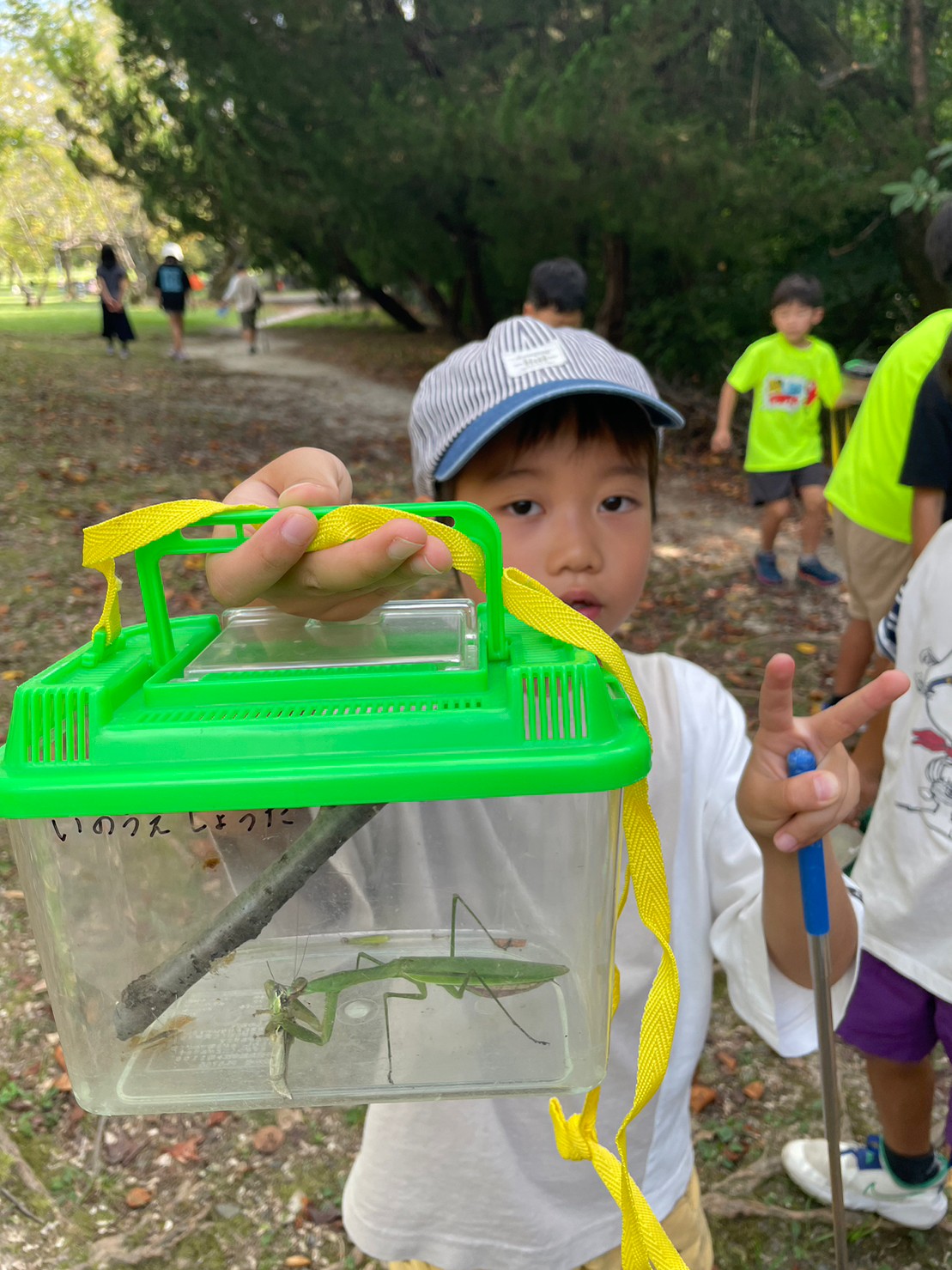 カマキリやトカゲを捕まえて大満足の一日となりました。