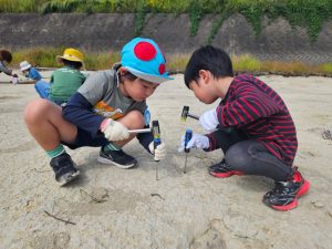 だんだんとコツをつかんできて、化石?らしきものを探し出すことが出来てきましたね(見つけても発掘するまでに割れてしまうんです。。)もう少しだよ!頑張って!!