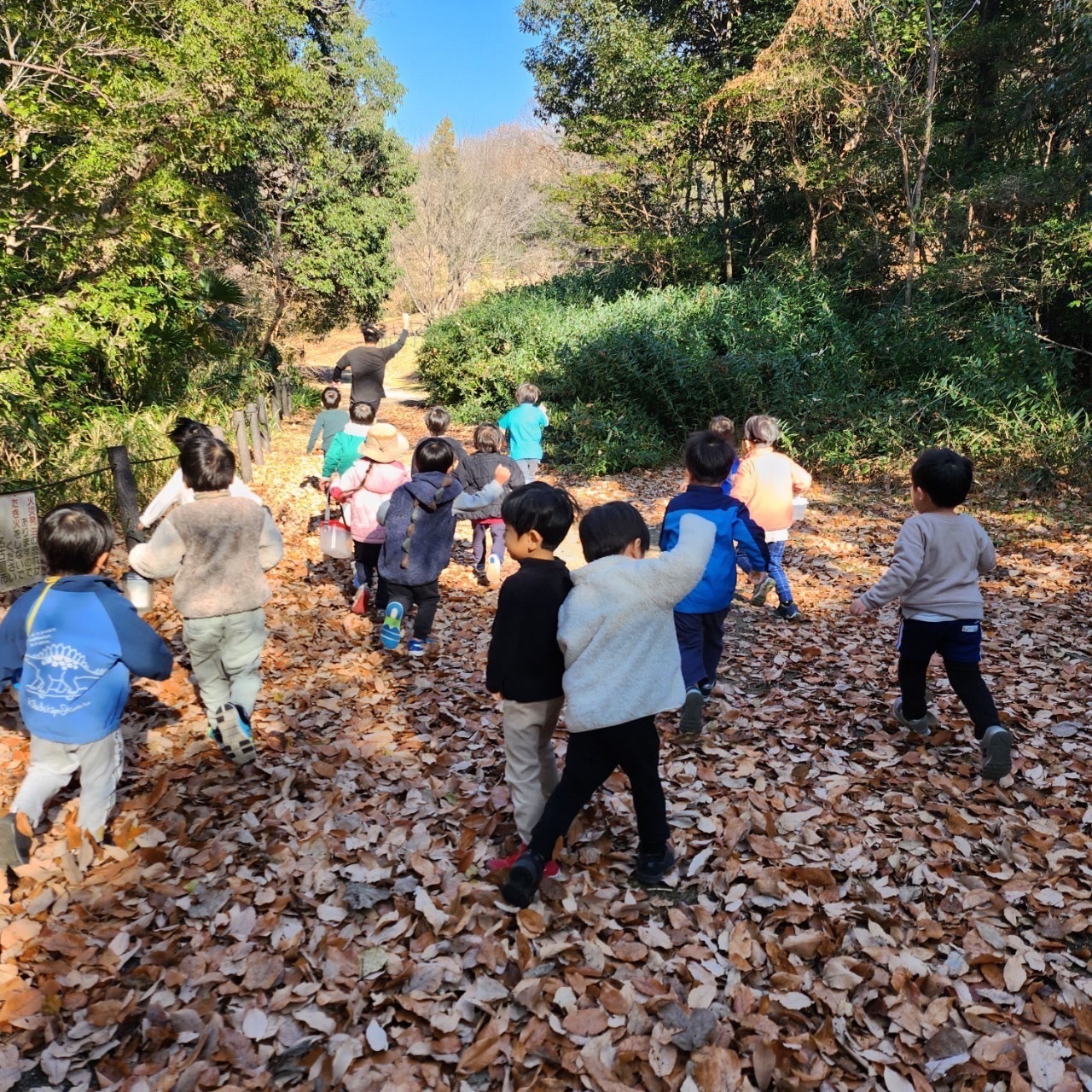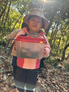 落ち葉でしっかり遊んだ後は今回のメイン、虫探し!!
