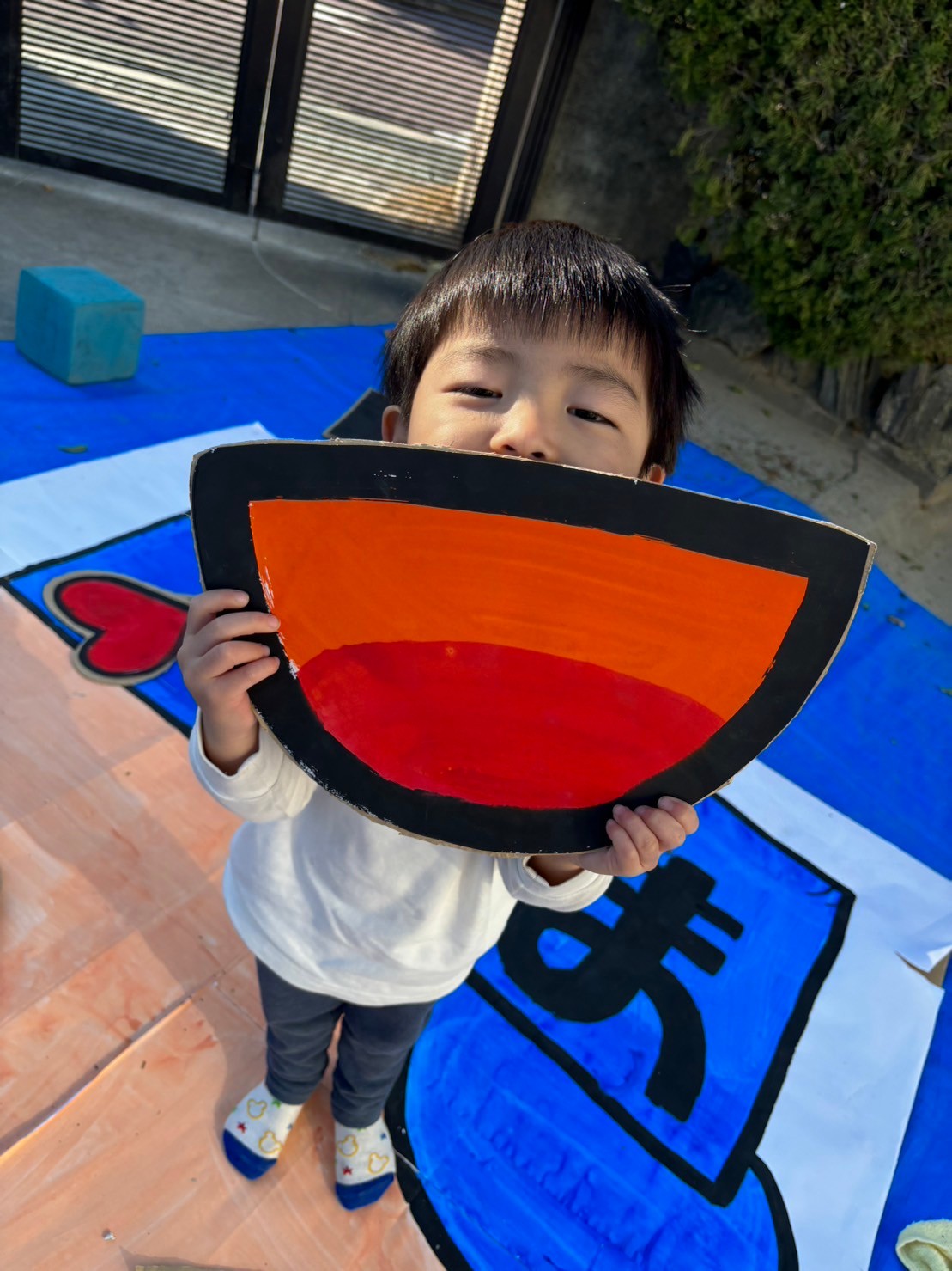 今回遊んだ遊びは全部で4つ!けん玉、こま、福笑い、ジャンボカルタ!