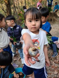 大きな幼虫を見つけることができると本当に嬉しそう!
