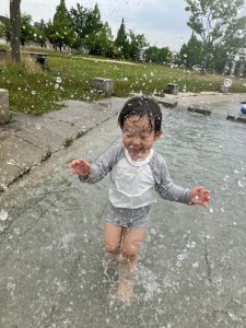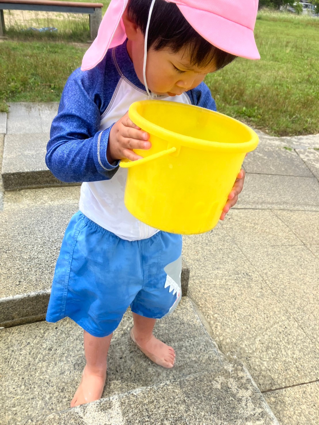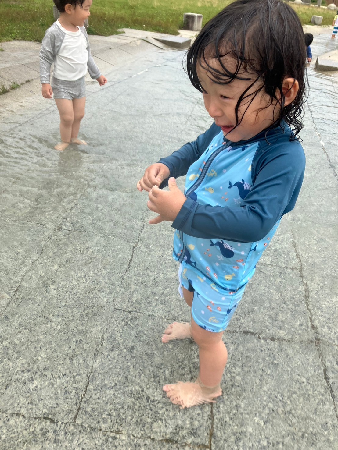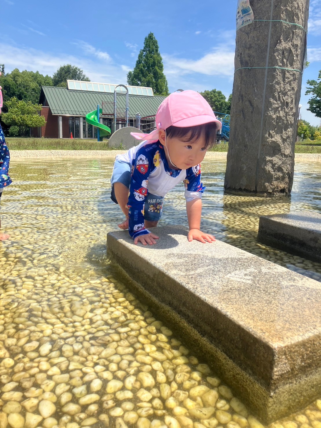 前回、せせらぎ公園、三ツ池公園の水遊びでは、水を怖がったり、避けたりすることなく、しっかりと体に水を受けながら、遊ぶことができていた子どもたち。