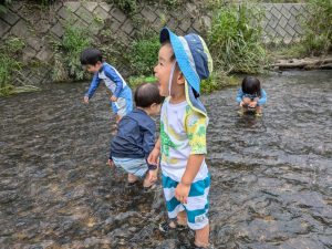 涼を求めて出掛けた川遊びでは、1学期の経験がバッチリと活かされている様子。