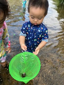 ズンズンと川を進み、積極的にタモを使ったり、生き物に興味をもったりと、1週目からたくましい姿を見せてくれました。