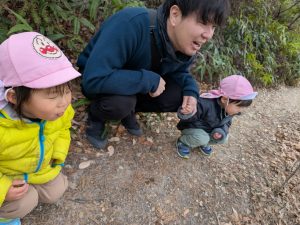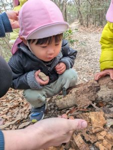 桃色帽子さんでの活動も終盤となりますが、何か特別なことをするのではなく、普段通りの自然遊びを通して、いつもの彼らの姿を受け止め、育みに繋げられたらと思います。