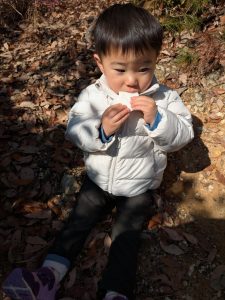 原っぱ、森、落ち葉広場などでたっぷり冬の自然遊びを楽しみました。