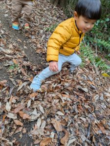 2月の上旬は、これまでの自然遊びをベースに、普段より少しだけ傾斜がある斜面をはじめ、ちょっぴり考えないと進めないような環境を用意。