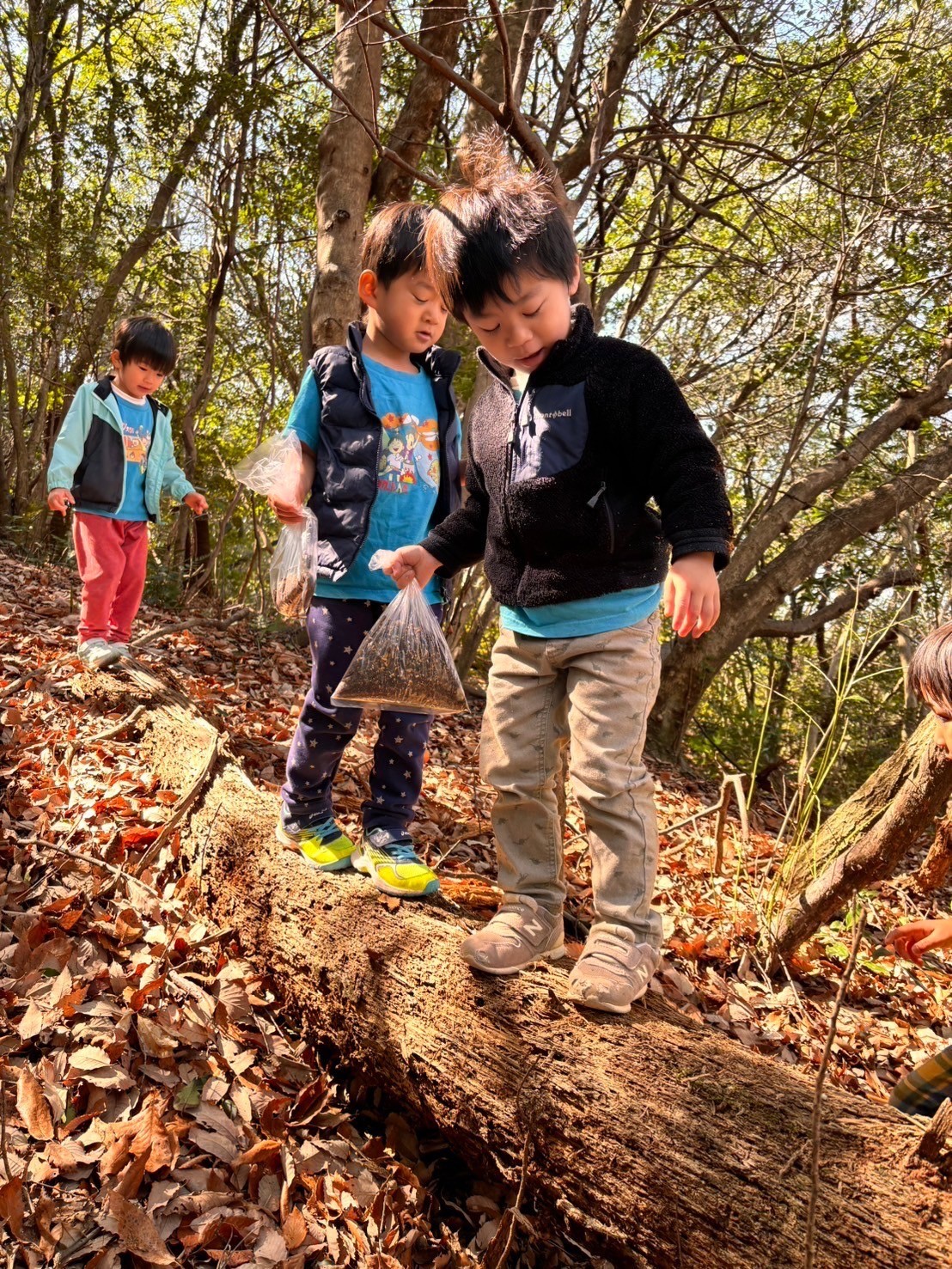 クリやどんぐりなどの木の実も多くあり、久しぶりの晴れの日探検を楽しみました。