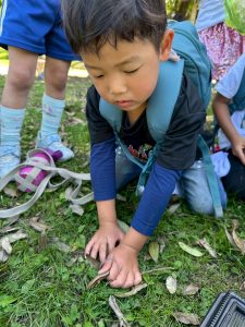 一人ひとり飼育ケースを持って、ダンゴムシを沢山探してみよう!!