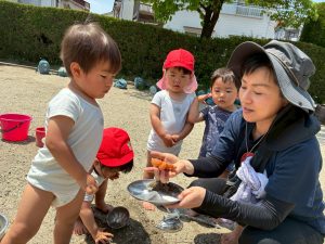 中には水と砂を混ぜて泥を作って遊ぶお友だちもいました。