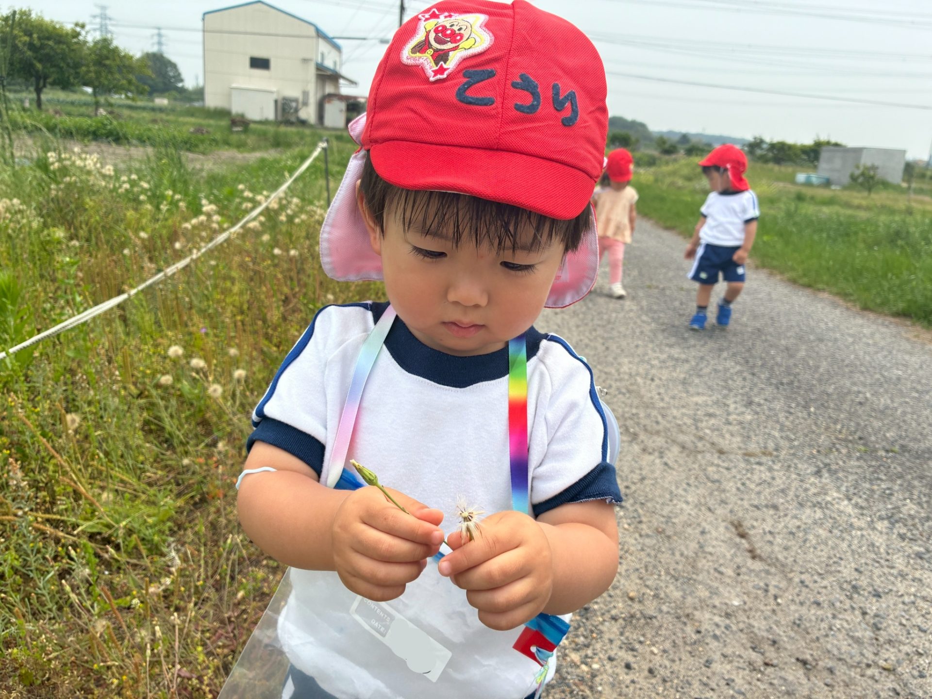 この日もタンポポのお花を見つけて摘んでいるお友だちがいました。