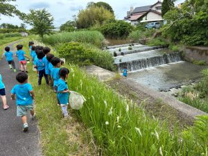 ちょっぴり岩崎川の近くまで見に行ってみよう!となり、2歳児の時は下りるだけで泣けちゃうお友達もいたのに、誰一人と泣くことはなく、その背中はとっても逞しかったです!
