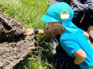 みんなで歩いていると、突然ゆうしん先生が『ちょっと待っててね!』と川に下りて行き…
