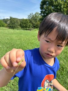 誰が大きなバッタを捕まえられるのか競いあっていたね!