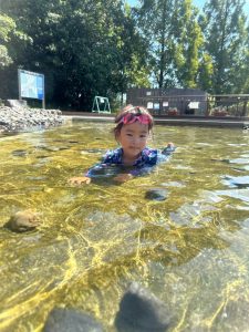 ほぼ貸切での水遊びでは、シャワーでの滝修行やワニさん、石を拾ってお風呂を作ったり、遊びに幅が広がりました。