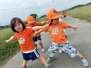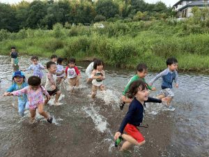 子どもたちは、原っぱや森、農道を軽快に駆け抜けて、その気候や自然を存分に味わいました。