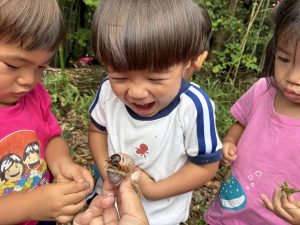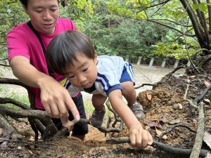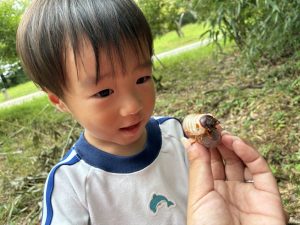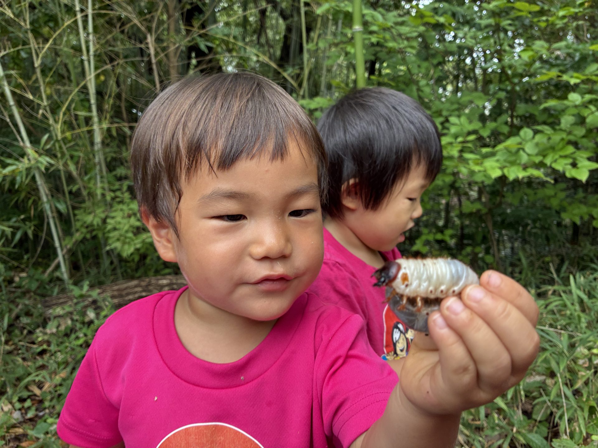 探検をしていると、カブトムシの幼虫を見つけました!!