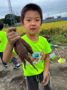 お芋掘りを通して、子どもたちは土の感触を楽しみながら「食べ物がどうやってできるのか?」を体感することができました!