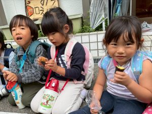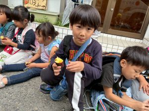 神社巡りや崖のぼり、お土産さがしに生き物さがしをしてお腹をペコペコにしました。