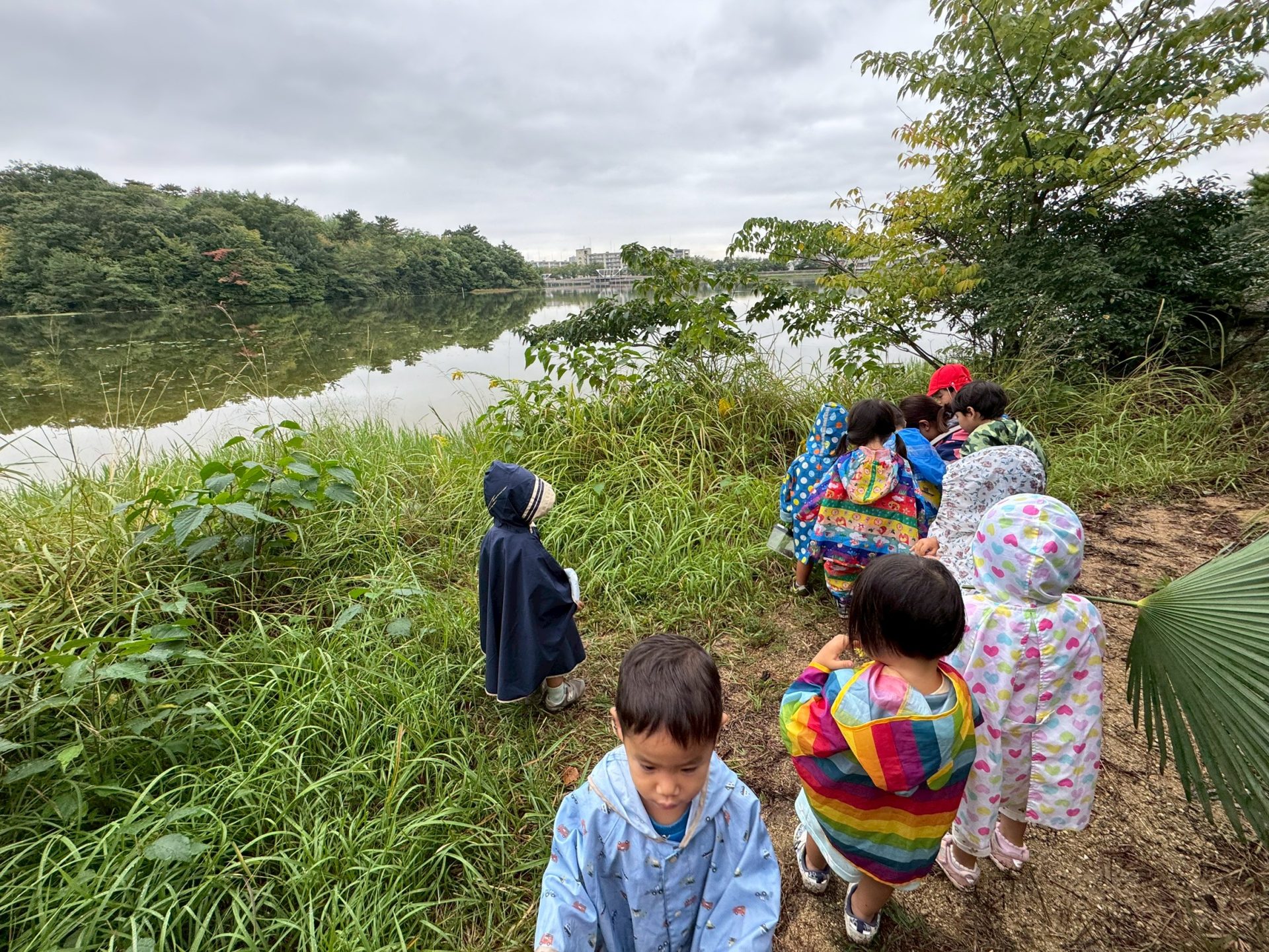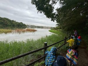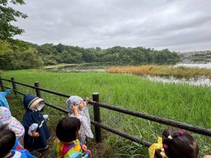 お池では鳥さんに向かってみんなで「ヤッホー!!」と叫びました。