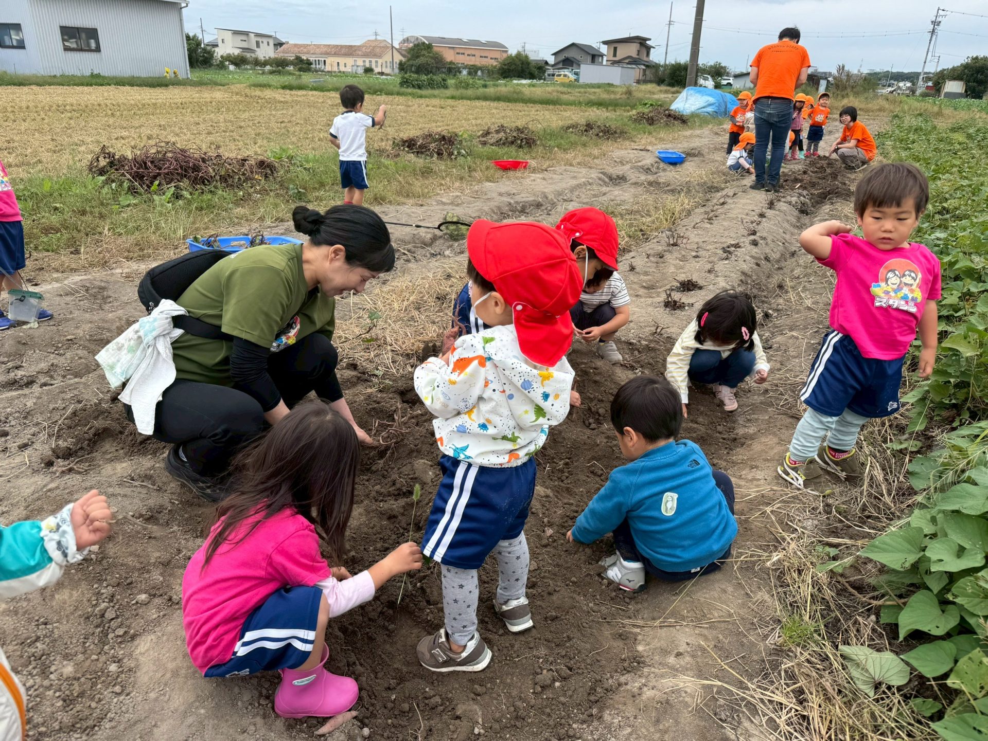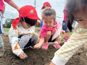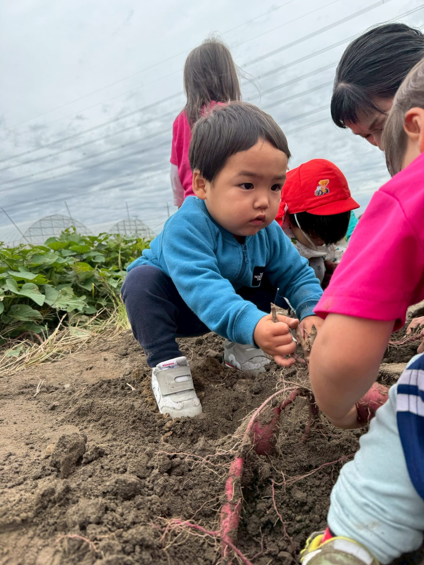 「お芋は土の中にあるからおててで上手にほろうね!」と話していました。