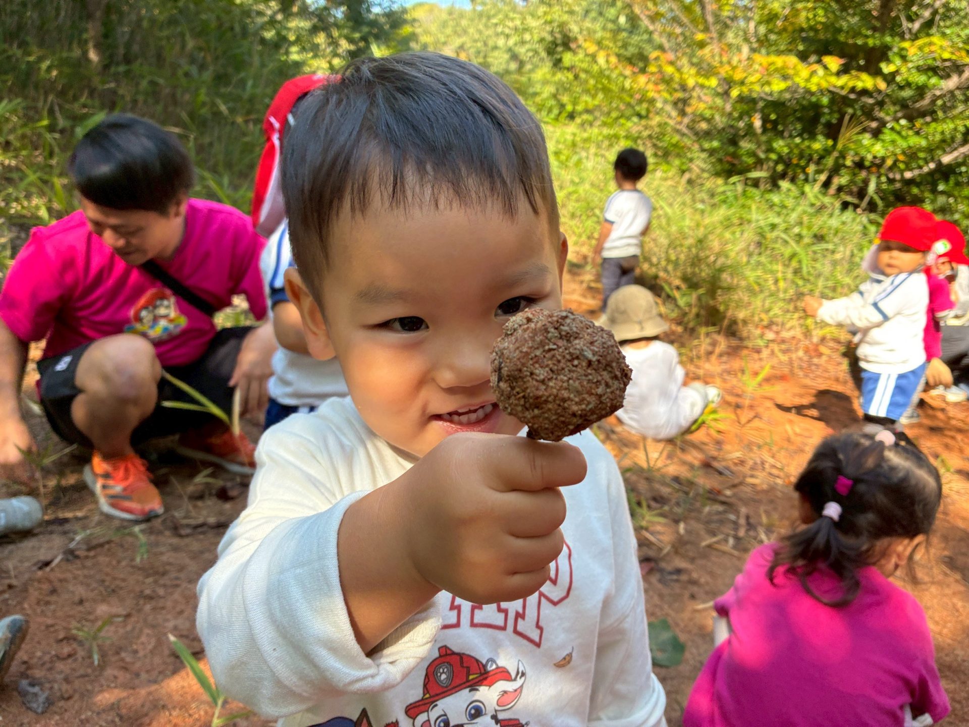 崖のぼりを頑張った後は緑地内の粘土のお山へ行き、
