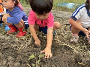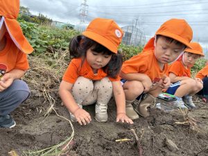 土の感触、においを感じながら、「サツマイモ」を収穫できました。