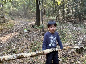 落ちてるでっかい木で「一本橋」もやりました。