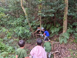そして、自分で運べないくらい大きい木は、みんなで協力だ!