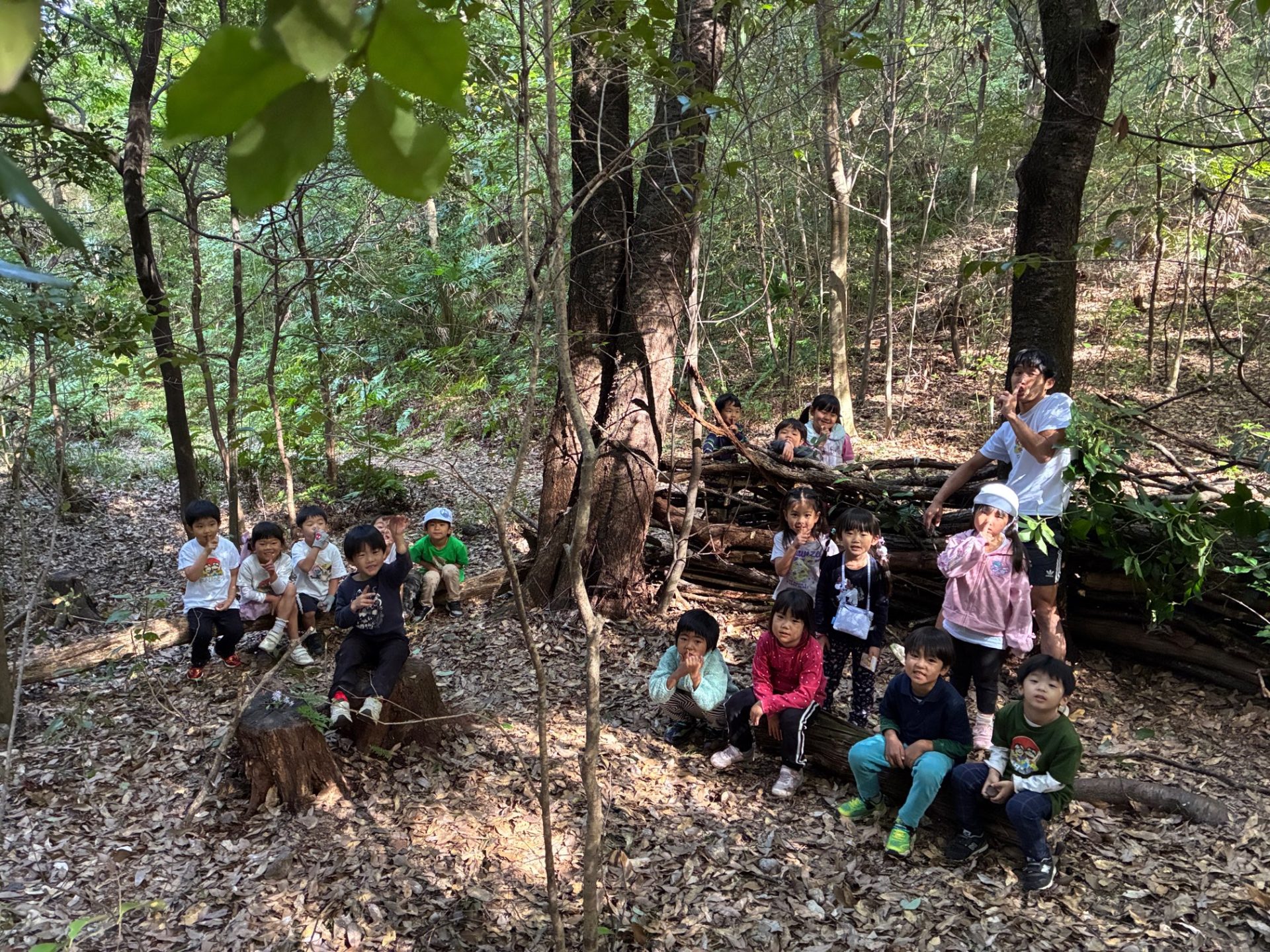 大きさ、太さ、形、バラバラな木ですが、立派な基地の完成だー!?