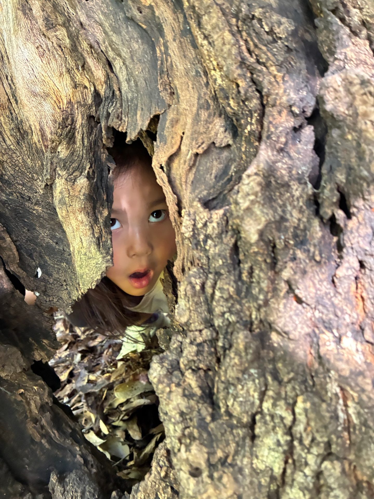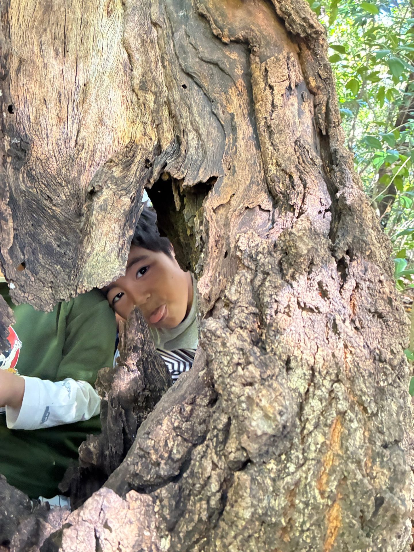 変な木の穴があったら、変顔もしちゃいますよ。