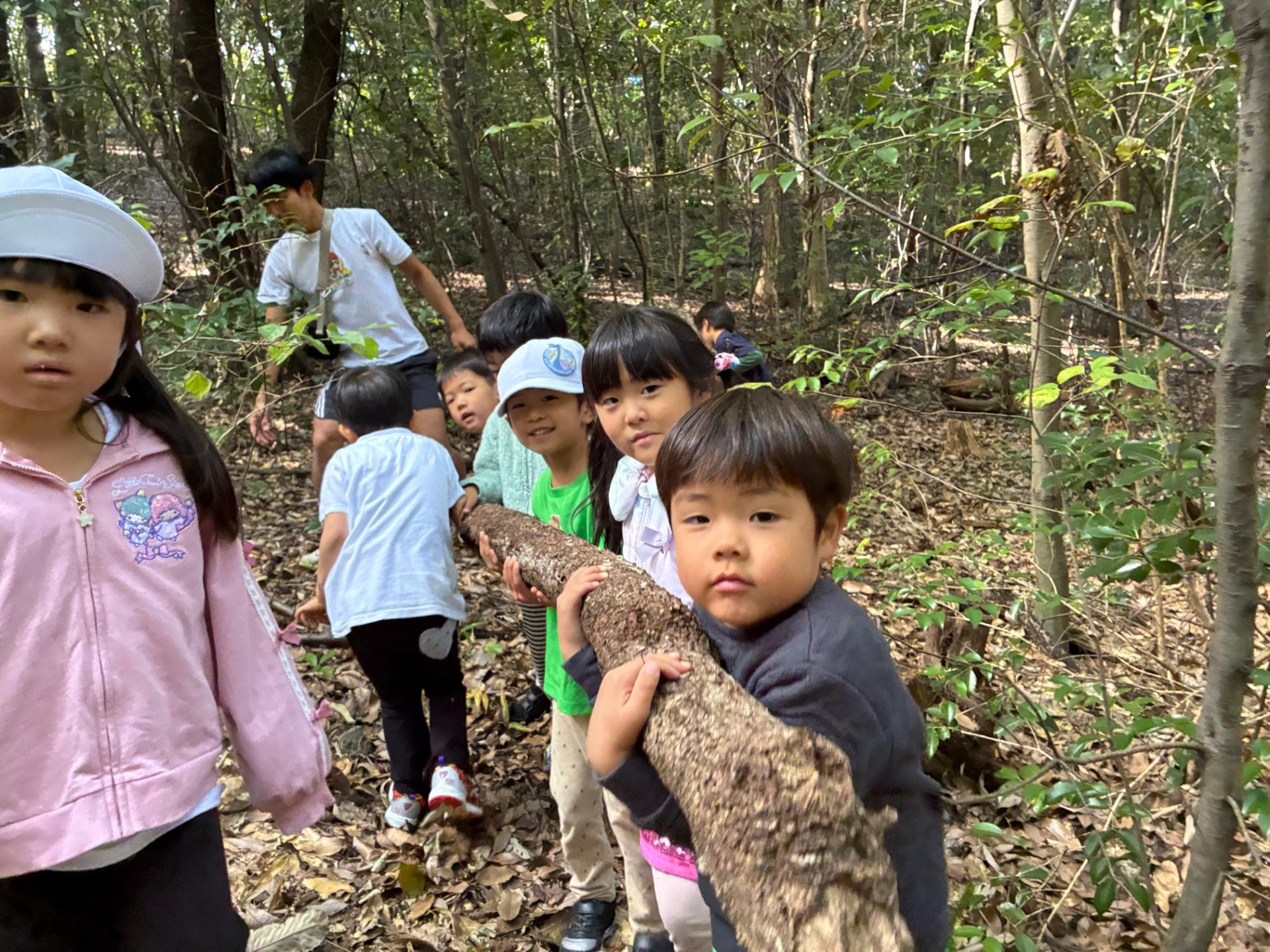 そして、自分で運べないくらい大きい木は、みんなで協力だ!