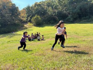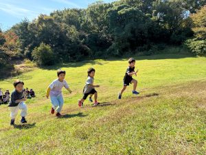さて、この日は、先日雨でできなかった“坂ソン”のリベンジと、子どもたちからリクエストのあった「紙ヒコーキ大会」を行いました!