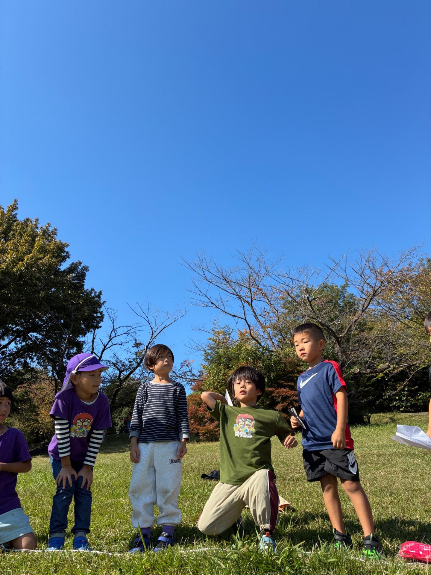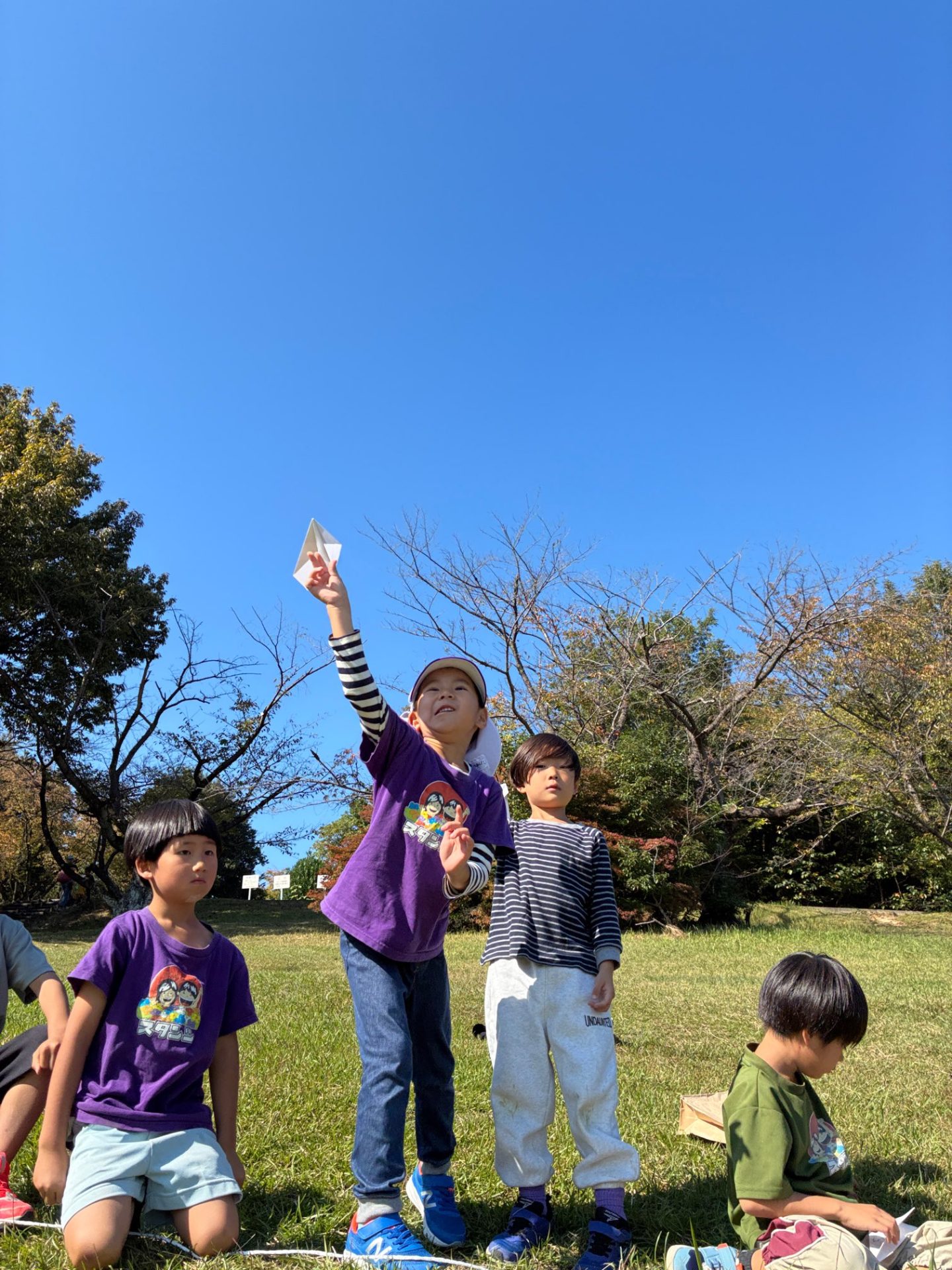 さて、この日は、先日雨でできなかった“坂ソン”のリベンジと、子どもたちからリクエストのあった「紙ヒコーキ大会」を行いました!