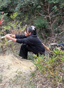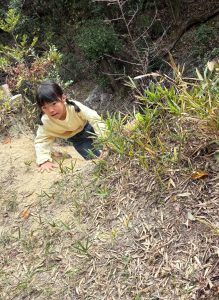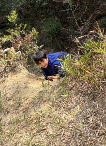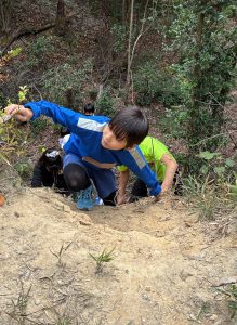 北高上緑地のがけは斜面が急で、つかまるところや足場の工夫が必要なレベルの高いがけです。