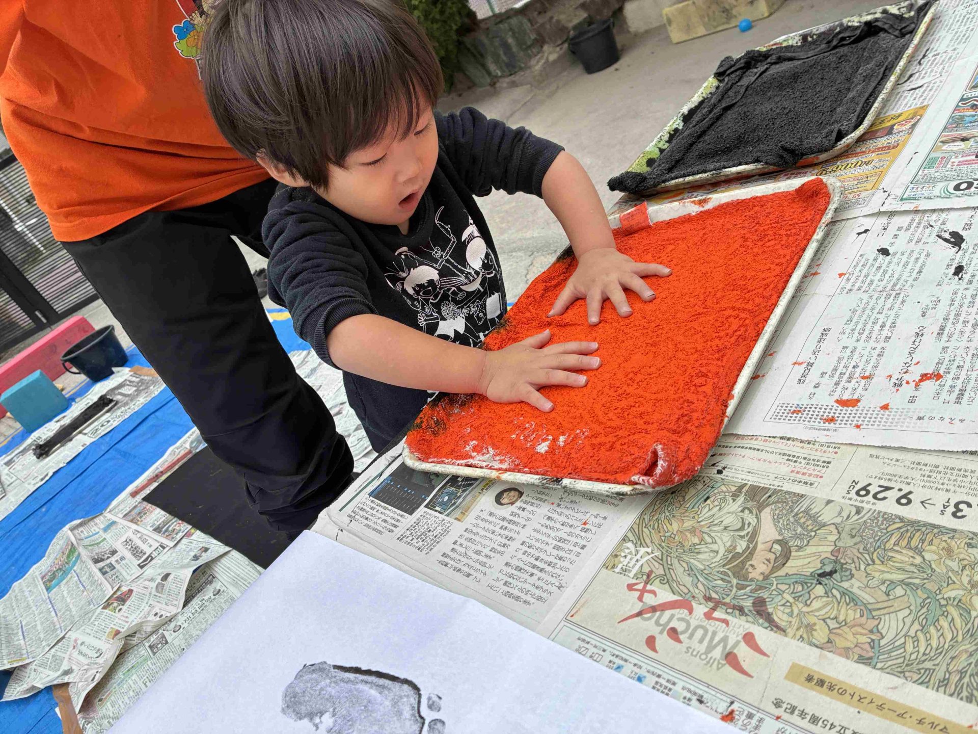 その墨の感触に、それぞれ思うところはあるようで、反応が十人十色のオレンジ帽子さん。