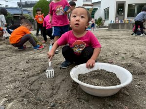 久しぶりの園庭遊びを楽しんだ赤さんでした。