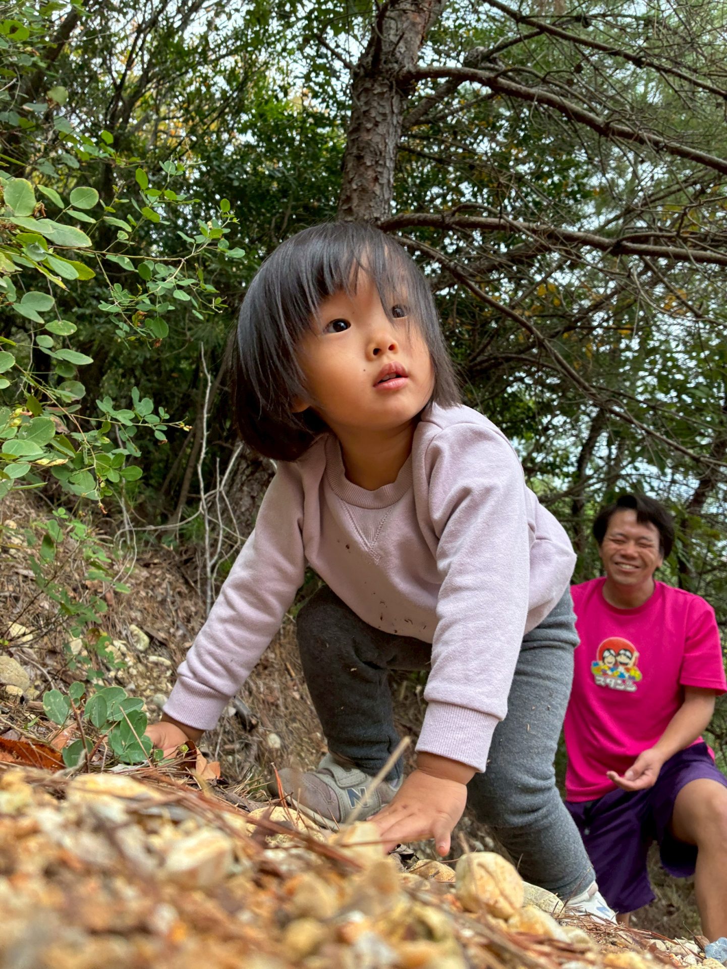 電車遊びの後はすぐ近くの崖で崖のぼりにチャレンジしました。