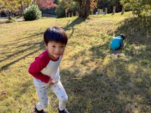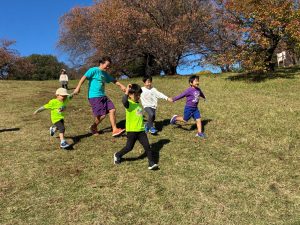 ドングリ拾いだけでは体力が有り余ってしまう…子ども達。