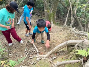 手を使わないで登ったり、根っこや枝を掴んで登ることができました。
