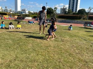 かくれんぼ大会は、たこあげ大会の時もパパやママ達と一緒に遊びたいなぁ〜と思っていますので、汚れても良い遊べる服装でお越しくださいね。