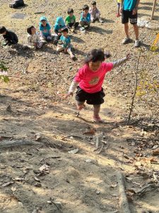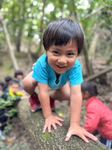 木のぼりんぴっくとは、木登りが上手な子、登りやすい木を探す事ができる子、木の一本橋を楽しめる子など、木と遊ぶこと。